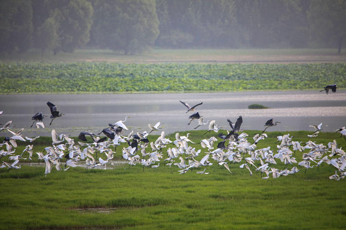 Thousands of egrets have gathered at Yellow River Wetland Park in Pinglu county, Shanxi province since the beginning of this summer, delighting tourists. [Photo by Liu Wenli and Yang Xinzhi/For chinadaily.com.cn]