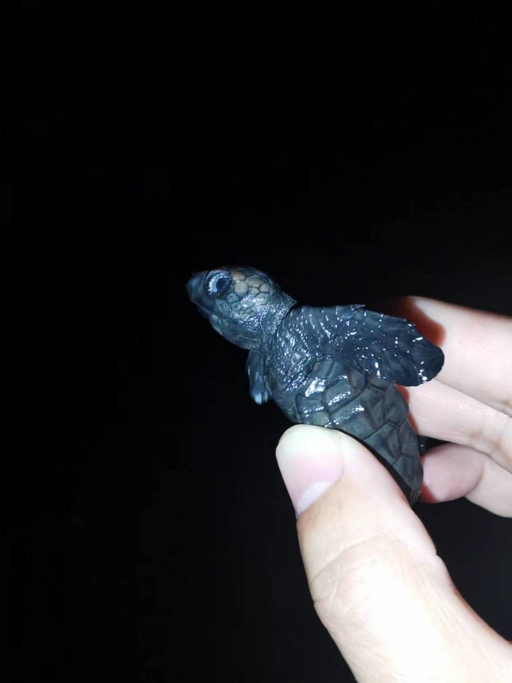 A young loggerhead turtle, commonly known as red sea turtles, hatched at the Huidong Sea Turtle National Nature Reserve in Guangdong province last week. [Photo provided to chinadaily.com.cn]