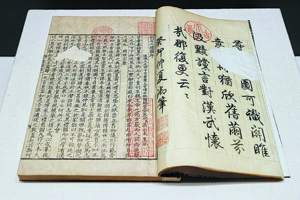 Viewing the exhibited books selected from Tianlu Linlang, Zhu feels relieved.