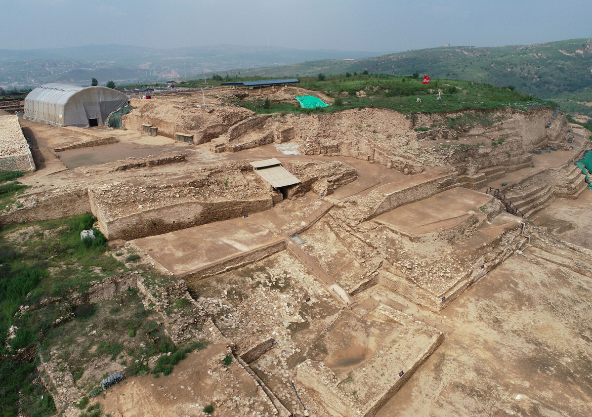 Aerial photo taken on Aug 6, 2022 shows a view of the Shimao ruins, an important prehistoric site in Shenmu city, Northwest China's Shaanxi province. [Photo/Xinhua]