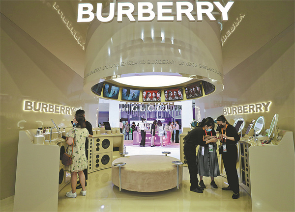 The booth of Burberry at the ongoing China International Consumer Products Expo in Haikou, Hainan province. [ZHANG WEI/CHINA DAILY]