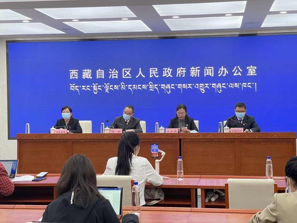 A news conference about the new COVID-19 outbreak in the Tibet autonomous region is held on Tuesday. [Photo by Daqiong/For chinadaily.com.cn]