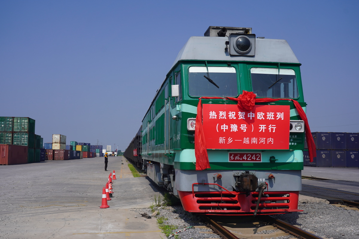 A freight train departs Xinxiang, Henan province for Hanoi, Vietnam, on Aug 6, 2022. [Photo by Lin Zijun/For chinadaily.com.cn]