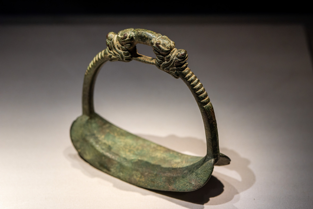 Bronze stirrup with double dragon head decoration, Yuan Dynasty (1271-1368) [Photo/IC]