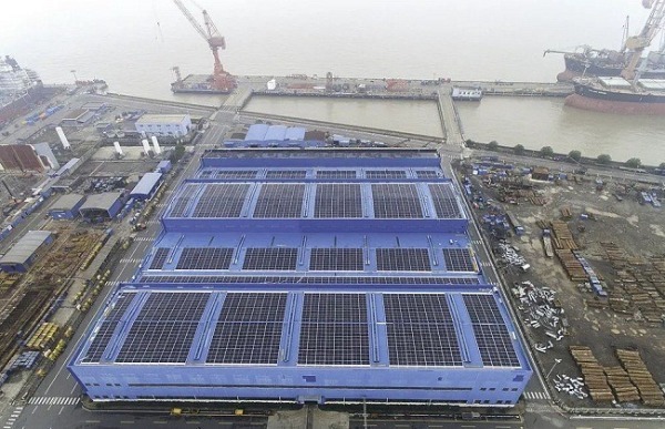 A building integrated photovoltaic system on the roof of the workshop of Zhoushan IMC-Yongyue Shipyard and Engineering Co Ltd. [Photo/WeChat account: zjzsqdxq]