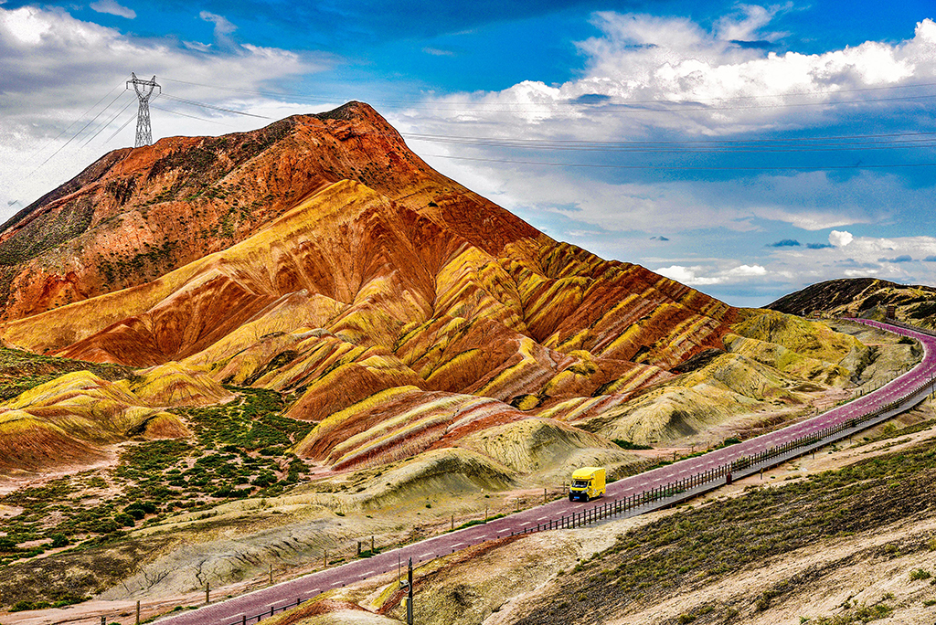 As one of the most beautiful landforms in China, the Qicai (colorful) Danxia scenic area in Zhangye, Gansu province is famous for its colorful hills and steep rock walls, showcasing magnificent views.