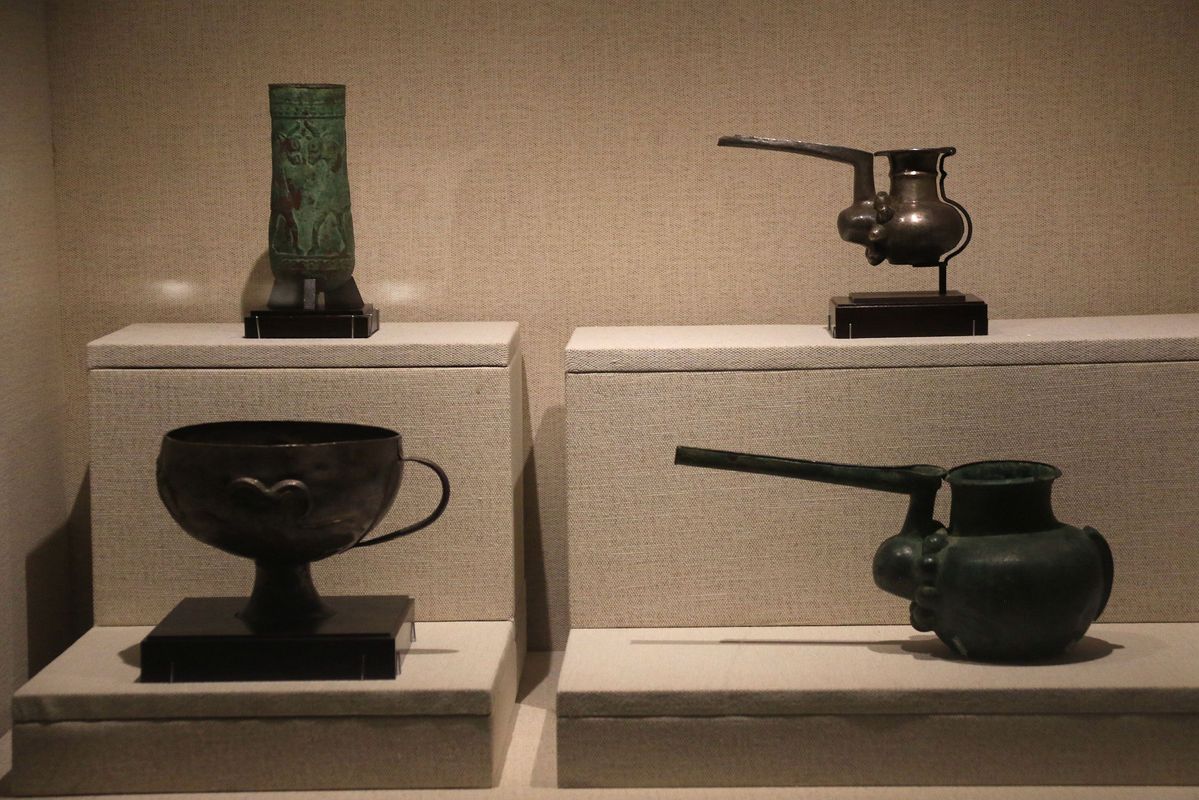 The Dunhuang Academy unveiled an exhibit on Aug 18, showcasing 221 pieces of metalwork and 33 coins from countries along the ancient Silk Road. The exhibit, co-hosted by the Dunhuang Academy and Hirayama Ikuo Silk Road Museum of Art in Japan, will run through Nov 18.
