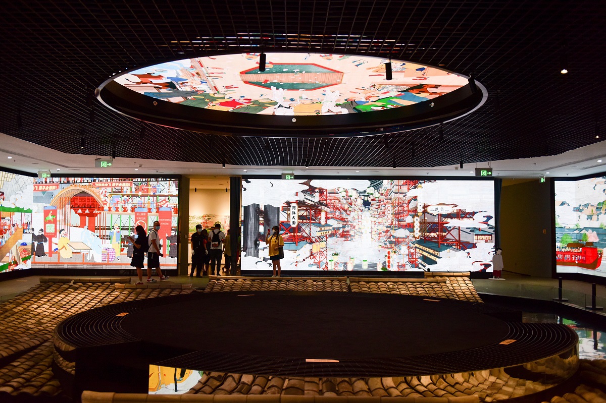 Two female architects have recreated the Qianlong Emperor’s Visit to Suzhou, a Qing Dynasty (1644-1911) painting scroll depicting an inspection tour of the Qianlong Emperor in 1751, in a humorous way. The Suzhou Museum in Jiangsu province unveiled an exhibit on Aug 20, showcasing their artistic design through engaging media. The exhibit will run through Nov 13.