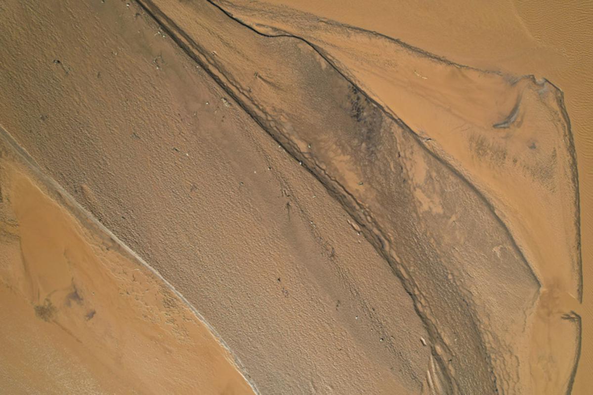 An aerial photo shows the Yongji section of the Yellow River in Yuncheng, Shanxi province. [Photo by Liu Baocheng/For chinadaily.com.cn]