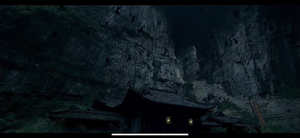 The scene that depicts dozens of black-clad killers carrying crescent daggers and jumping from all sides of the cliff into the doctor's house was shot at Three Natural Bridges at Wulong Karst Tourism Area.