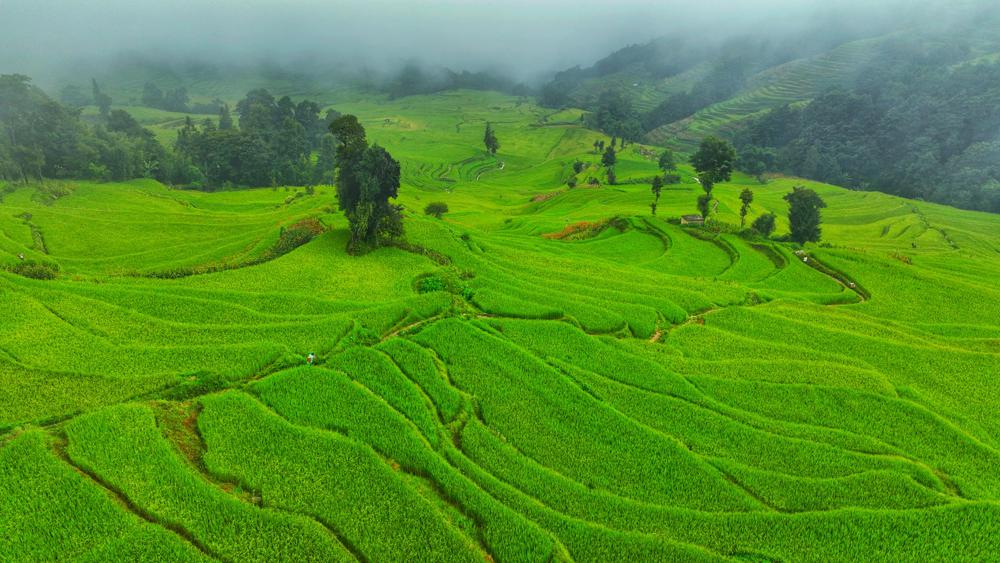 Terraced rice fields at Honghe Hani and Yi autonomous prefecture, Yunnan province, form a poetic scene in August. [Photo by Hu Yanhui/for chinadaily.com.cn]