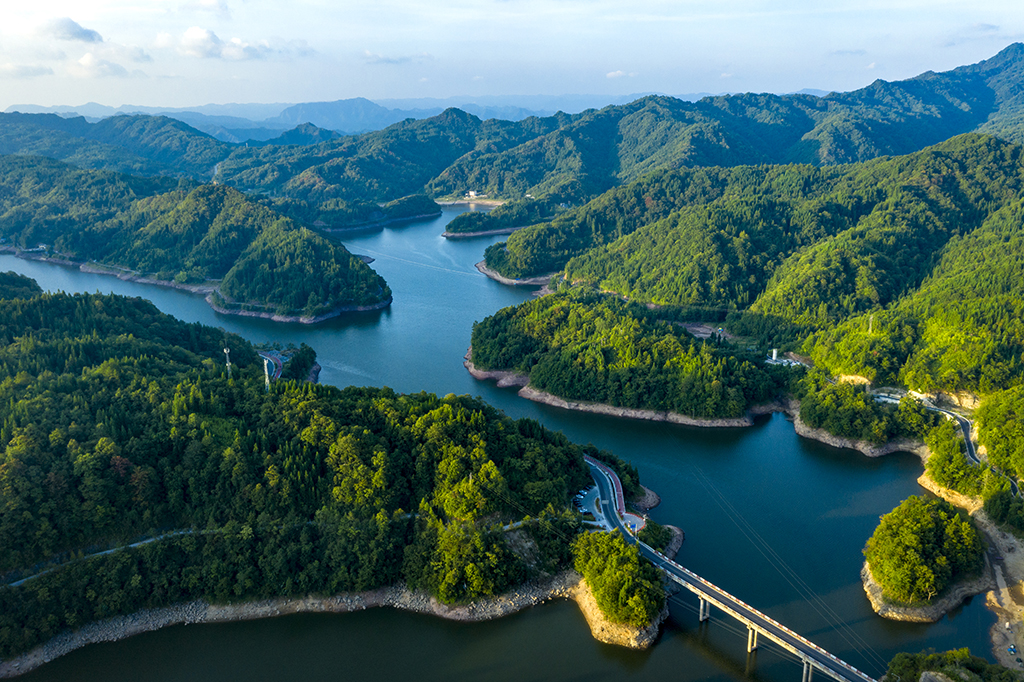 What gorgeous views of the Taiyang Lake in the Huangshui National Forest Park in Chongqing! As an artificial lake with the highest altitude, the best water quality, and the most abundant vegetation in Southwest China, the serene lake boasts a blue sapphire hue as viewed from the top.