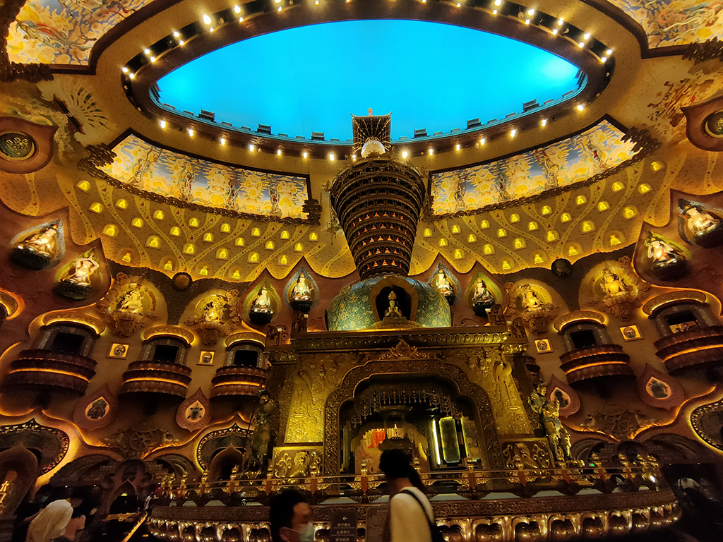 The grand interior of the Thousand-Buddha Hall in the Usnisa Palace [Photo/IC]