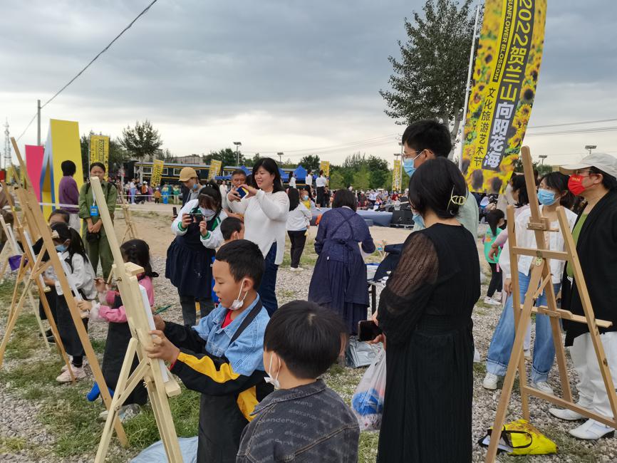 Residents and tourists came to take photos, draw and paint in the sunflower fields of Helan Mountain in the Ningxia Hui autonomous region in late August. [Photo by Su Yong/For chinadaily.com.cn]