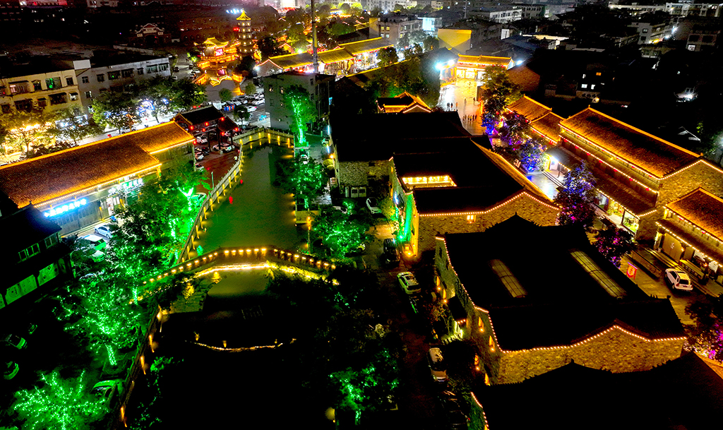 An aerial night view of Guanzhong Old Street, Yangshang county, Fuyang, Anhui province [Photo/IC]