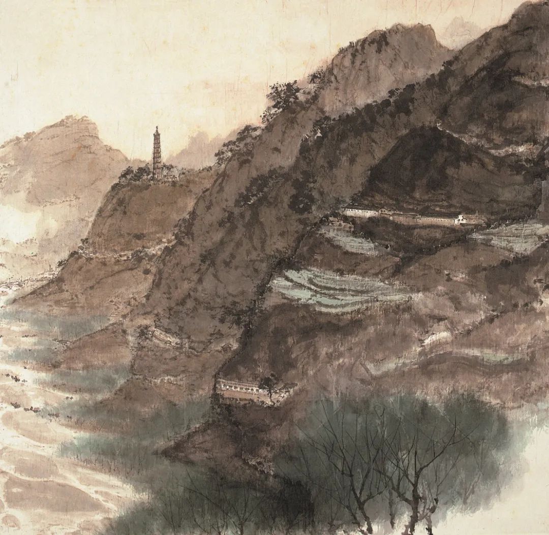 A painting by Fu Baoshi depicting the pagoda in Yan’an [Photo/Official WeChat account of the Anhui Museum]