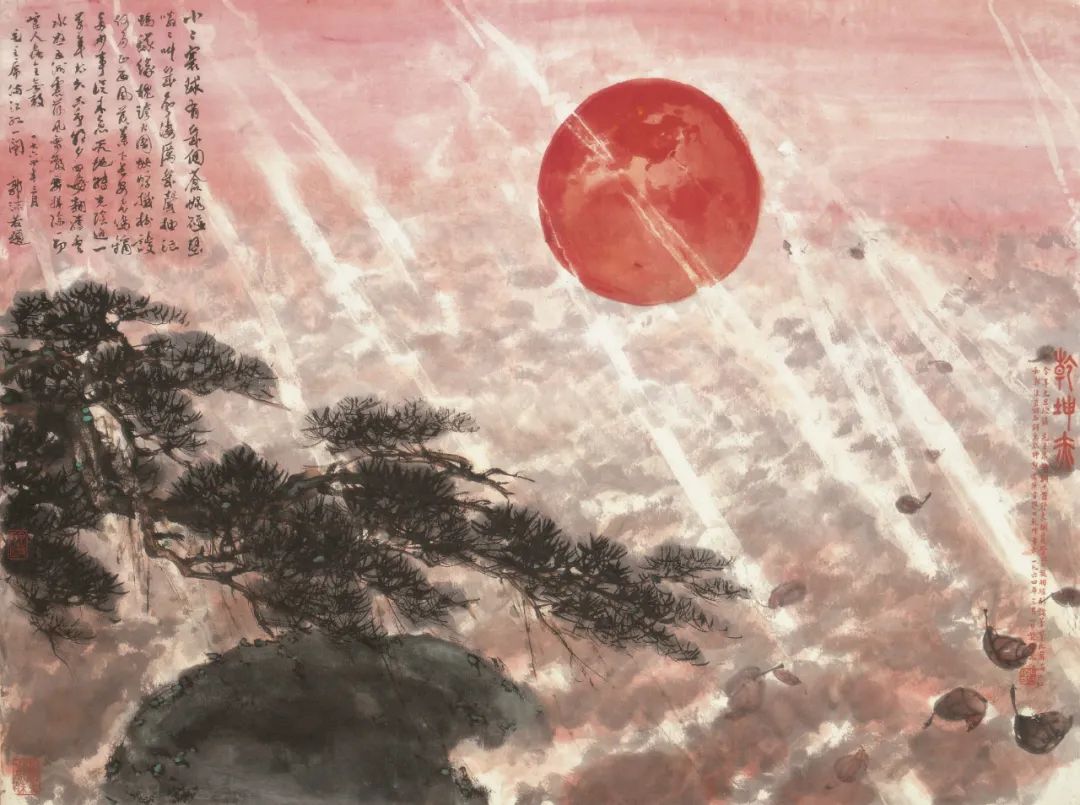 A painting by Fu Baoshi depicting sunrise [Photo/Official WeChat account of the Anhui Museum]