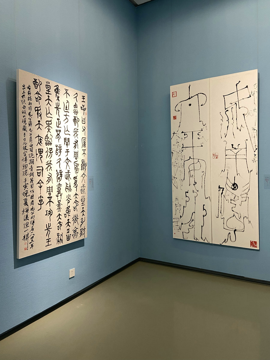 Historic rubbings and modern works are on show. [Photo by Lin Qi/China Daily]