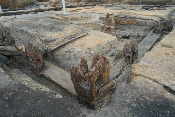 The remains of the wooden columns of F63.[Photo provided to China Daily]