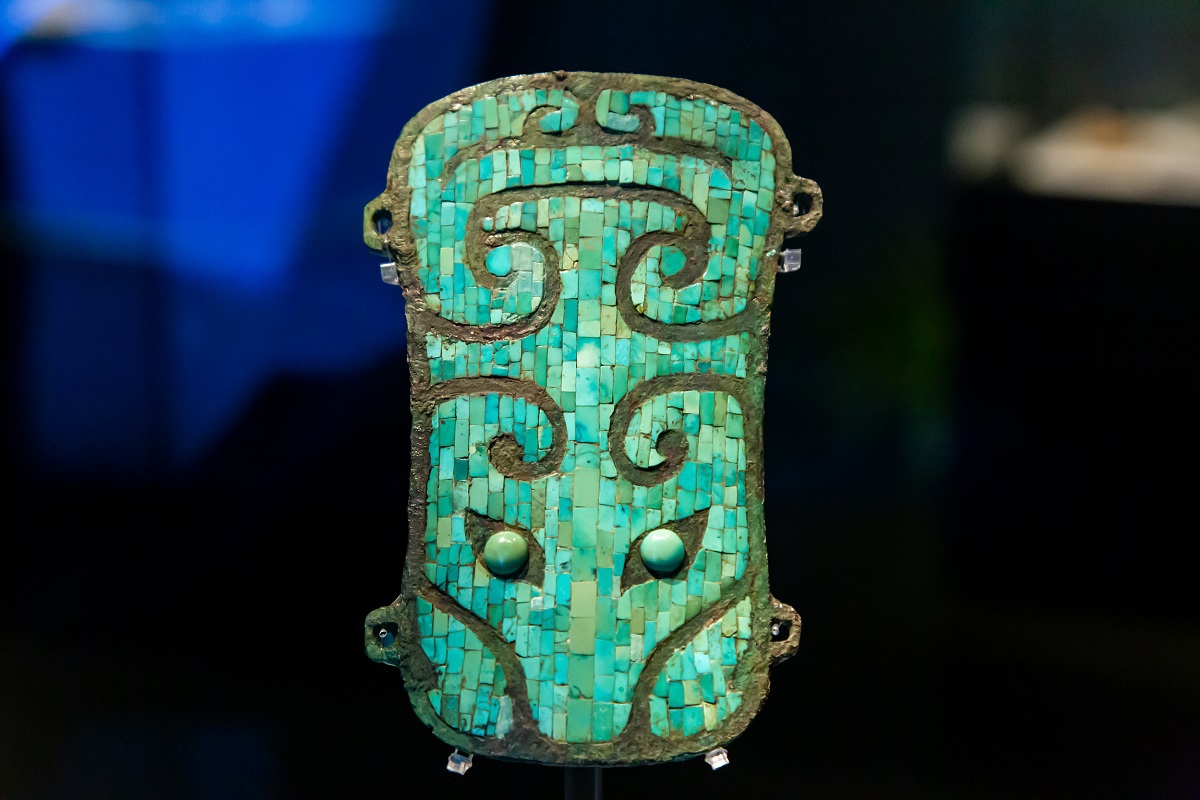 Bronze plaque with beast pattern and inlaid turquoise, Xia Dynasty (c.21st century-16th century BC), from the collection of the Erlitou Museum of the Xia Capital Site [Photo/VCG]