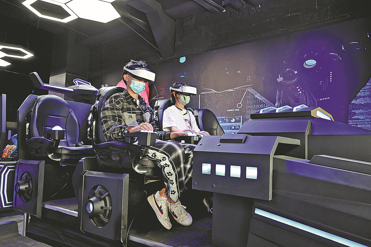 Two shoppers try VR games at a department store in Hohhot, Inner Mongolia autonomous region. [Photo/China News Service]
