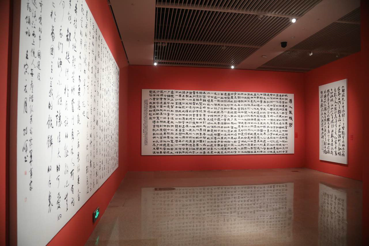 Calligraphic works are on show at an exhibition at the National Museum of China to hail accomplishments in Hunan province over the past decade. [Photo provided to China Daily]