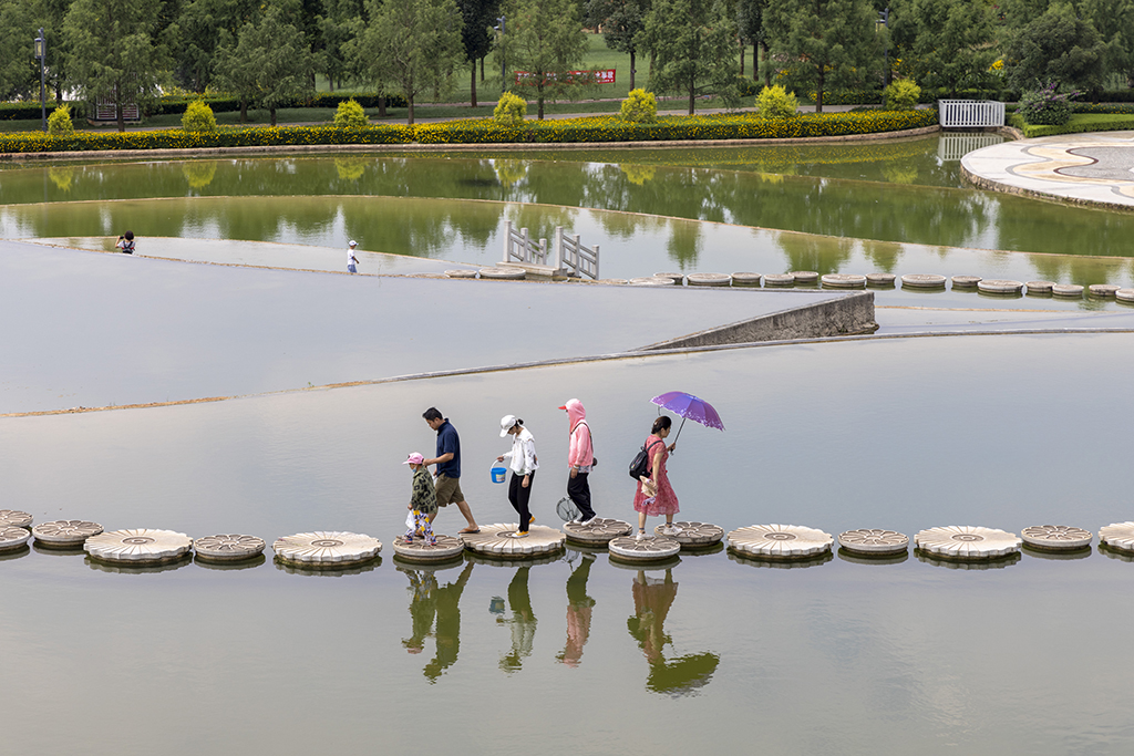 Tourists explore the Five Color Pond in the Jinping Mountain scenic area in Mile, Yunnan province. [Photo/IC]