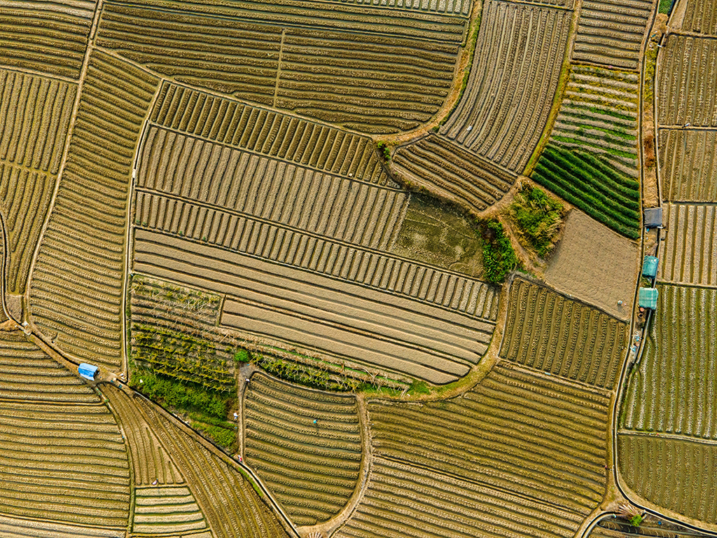 Autumn planting fields in Nanjing, Guangxi Zhuang autonomous region resemble pencil sketches from a bird’s eye view. [Photo/IC]