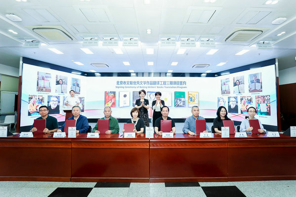 Seven books are signed for the third stage program at the opening ceremony of Beijing Author Day on Sept 6, 2022. [Photo provided to chinadaily.com.cn]