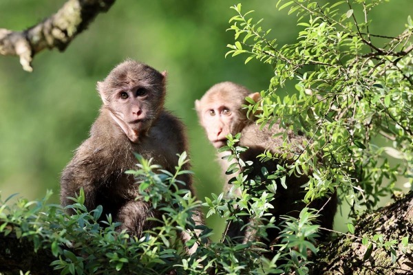 The number of Tibetan macaques — Macaca thibetana — is growing steadily at Wuyi Mountain National Park, Fujian province, after years' of protection efforts. Recently, they were photographed playing around in the park.
