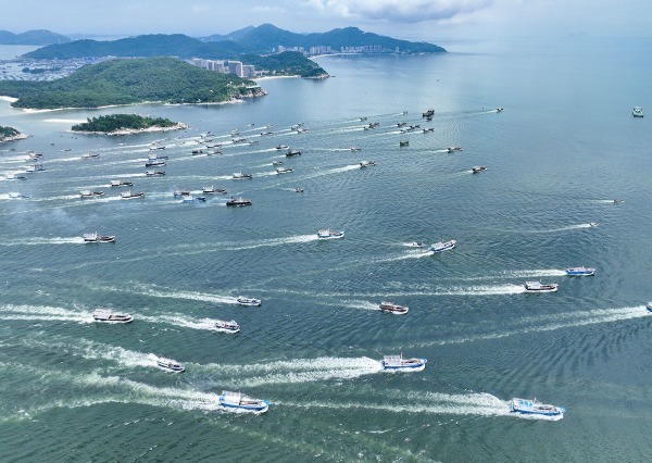 Fishing boats in Yangjiang, Guangdong province set sail as a fishing moratorium of three and a half months in the South China Sea ends on Aug 16, 2022. [Photo by Liang Wendong/For chinadaily.com.cn]