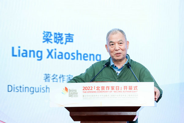 Famous Chinese writer Liang Xiaosheng gives a speech at the opening ceremony of Beijing Author Day on Sept 6, 2022. [Photo provided to chinadaily.com.cn]