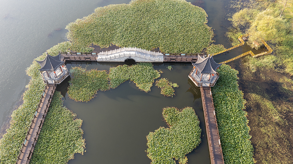 Stunning aerial view of the Xishuanghu scenic area in Lianyungang, Jiangsu province [Photo/IC]