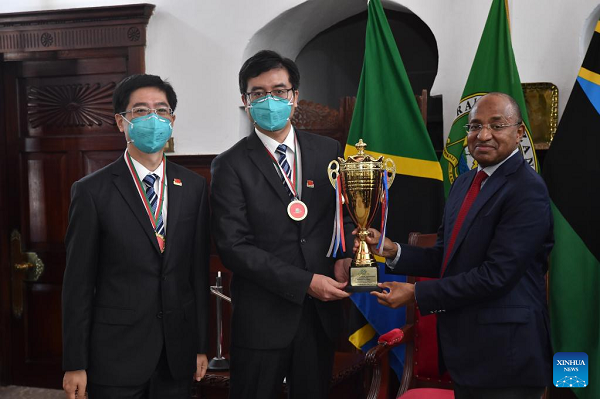 DAR ES SALAAM -- Tanzania's Zanzibar President Hussein Ali Mwinyi on Saturday awarded 21 members of the Chinese medical team with medals for their one-year stellar medical services in the Zanzibar archipelago.