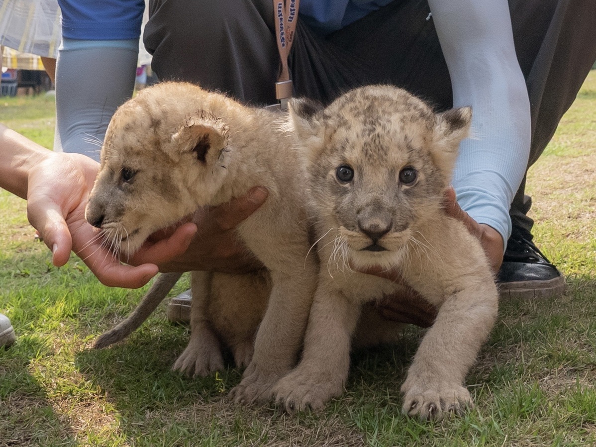 Two African lion cubs abandoned by their mother shortly after birth are now in good health.