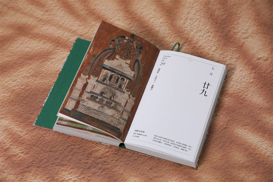 The Dunhuang Calendar 2023 contains pictures of 365 copied works of murals and restored painted sculptures in Dunhuang created by Dunhuang Art Institute. [Photo provided to China Daily]