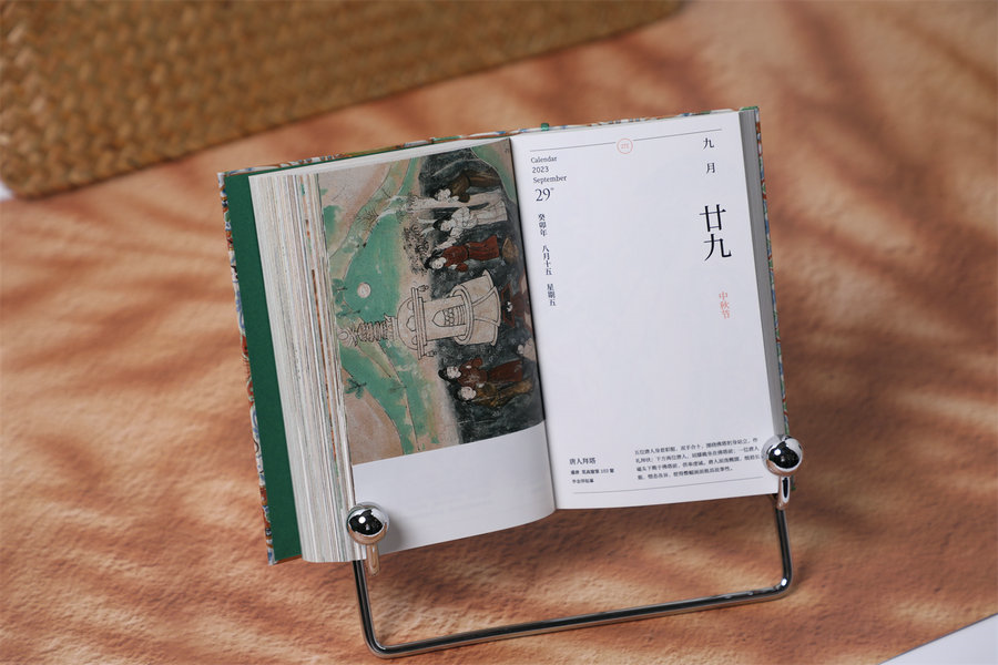 The Dunhuang Calendar 2023 contains pictures of 365 copied works of murals and restored painted sculptures in Dunhuang created by Dunhuang Art Institute. [Photo provided to China Daily]