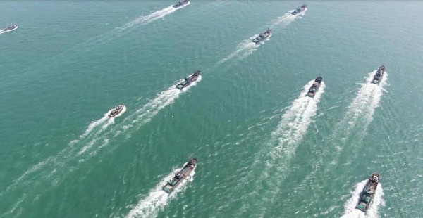 Fishing boats sail from a port in Lanshan, Shandong province, after a recent fishing moratorium ended on Thursday. [Photo provided to chinadaily.com.cn]