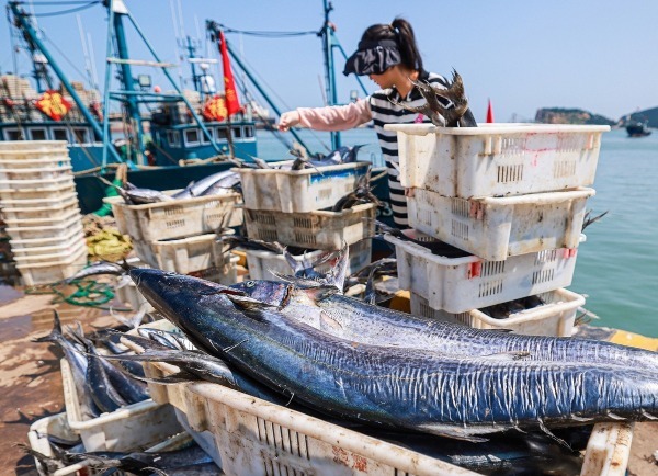 Fish are sorted at a port in Weihai, Shandong province, on Tuesday. [Photo by Li Xinjun/For chinadaily.com.cn]