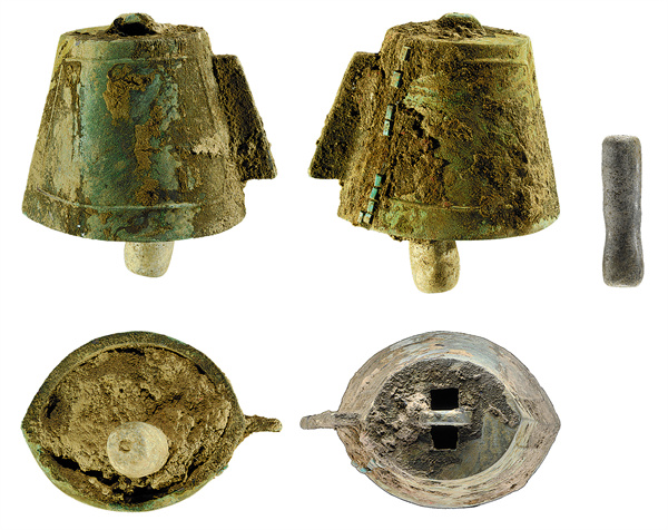 Dragon-shaped turquoise artifacts and bronze bells unearthed from Erlitou combine to present an aura of dynasty in archaeologists' eyes.[Photo provided to China Daily]