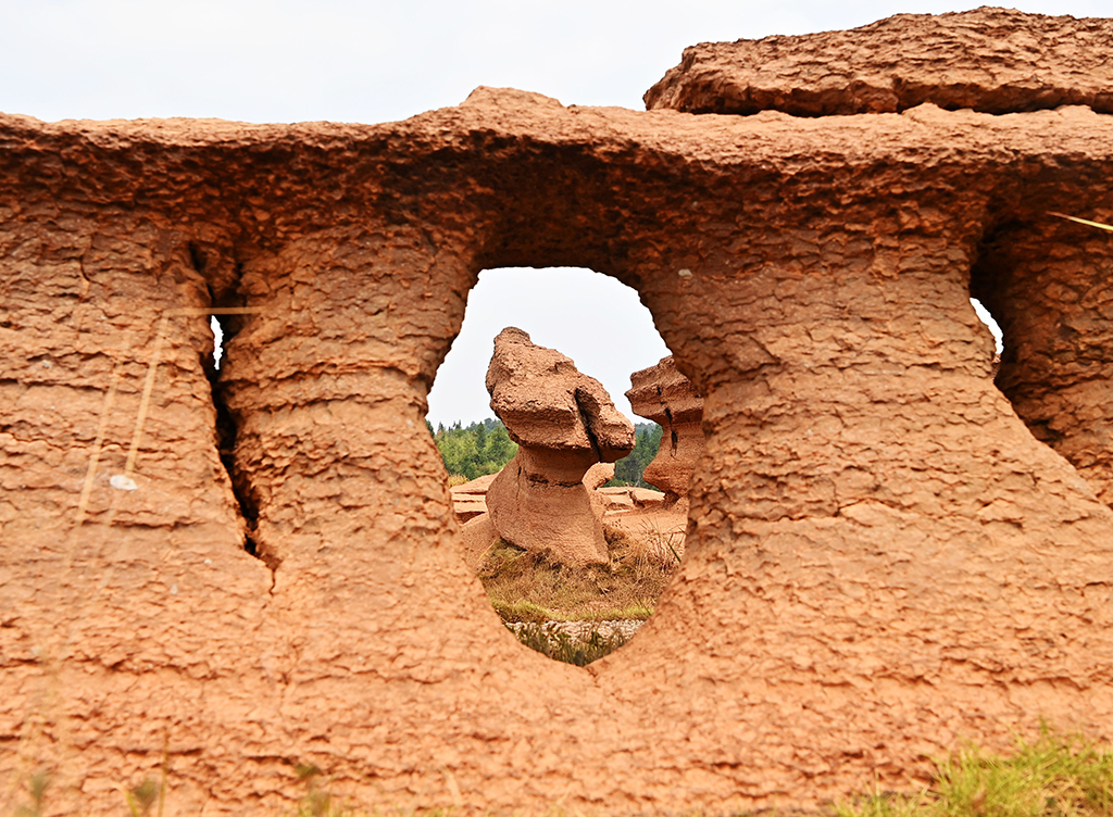 The rocks in the Red Stone Forest Geological Park in Chongqing are dark red in color and have different shapes. [Photo/IC]