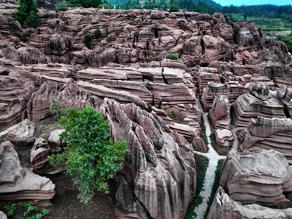 The Red Stone Forest Geological Park in Chongqing features karst and canyon landforms. [Photo/IC]