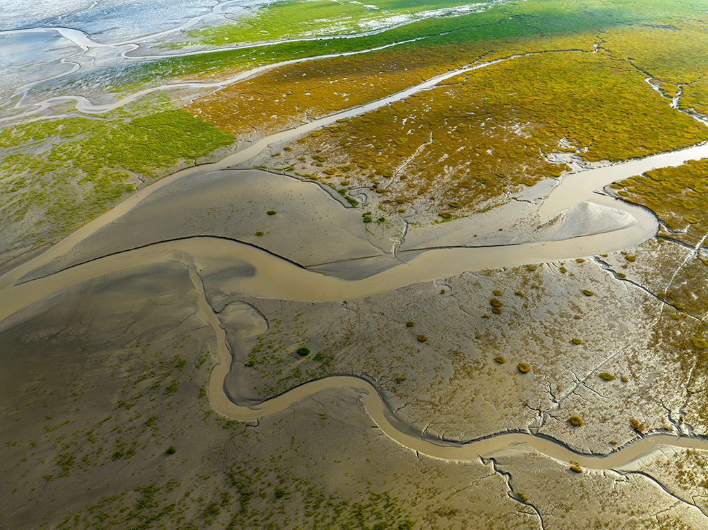 Plants around the Tiaozini Wetland in Yancheng, Jiangsu province turn yellow and red. [Photo/IC]
