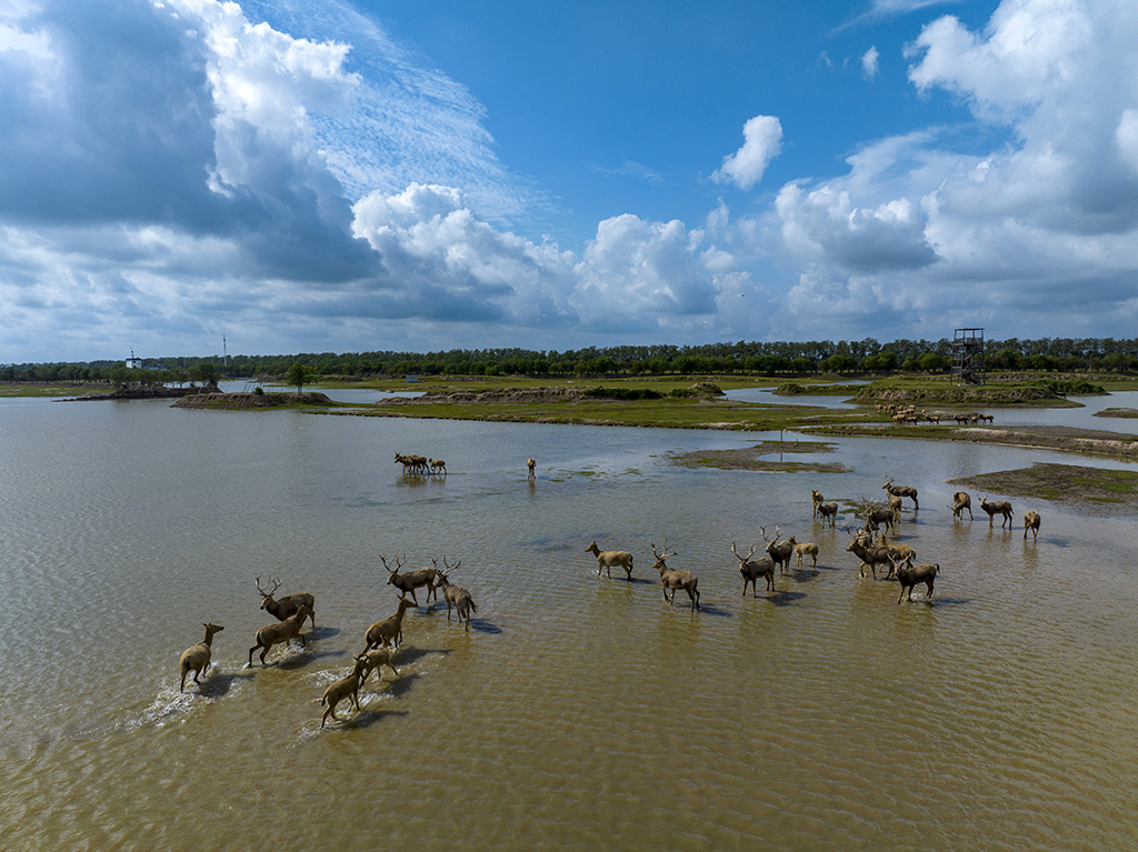 The Huanghai Wetland in Yancheng, Jiangsu province draws herds of milu deer. [Photo/IC]