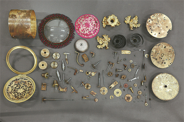 The disassembled components of a chronograph movement of an imperial timepiece.[Photo provided to China Daily]