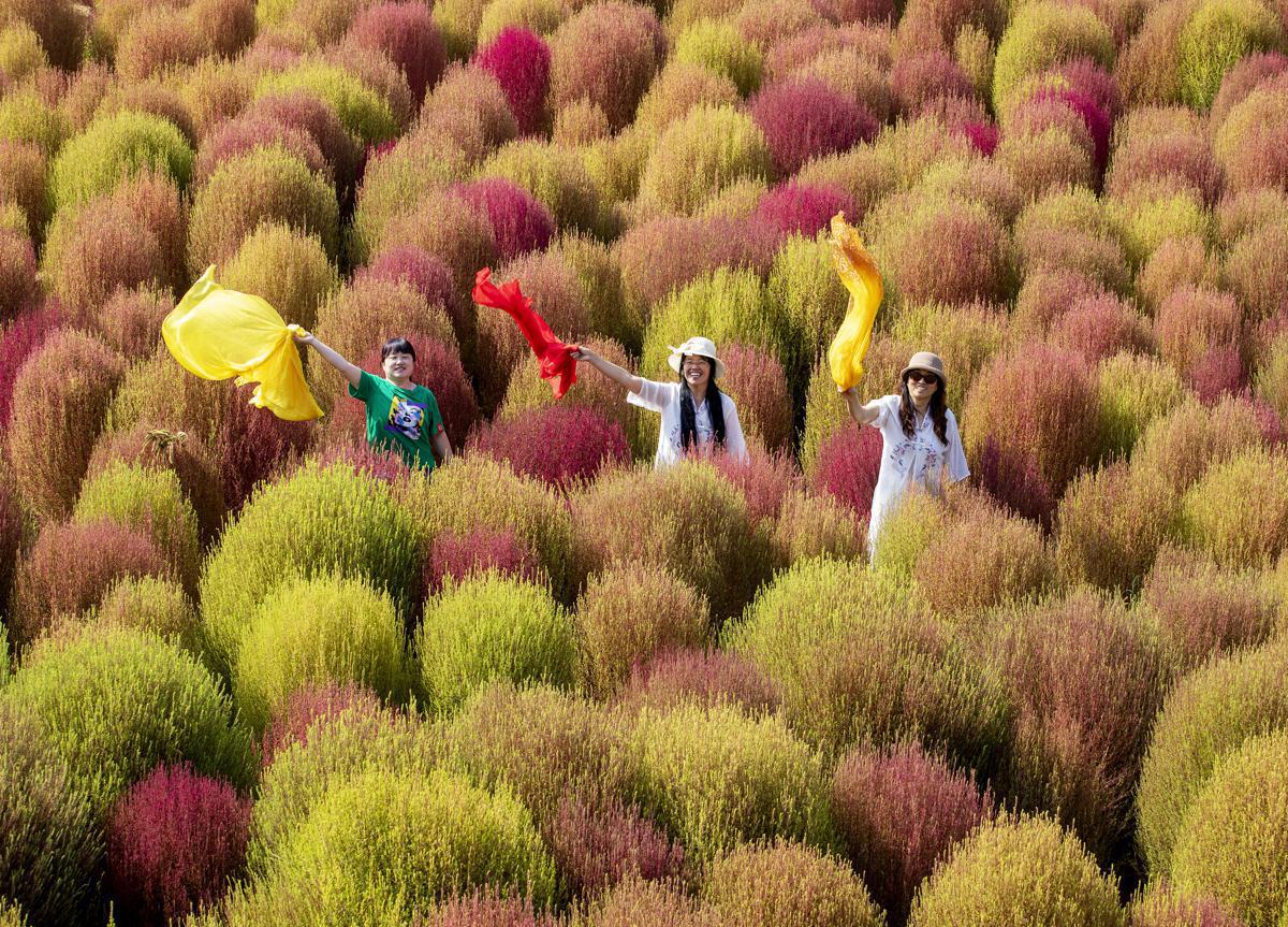 Tourists take photos on farmland in Caojiagou village of Liulin county, Shanxi province. [Photo by Wang Fengyun/For chinadaily.com.cn]