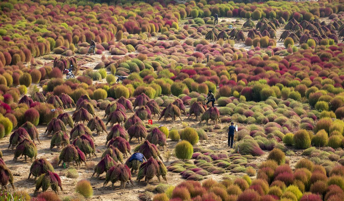 Farmers in Caojiagou village in Liulin county, Shanxi province, are glad for this year's bumper harvest of fireweed. [Photo by Wang Fengyun/For chinadaily.com.cn]