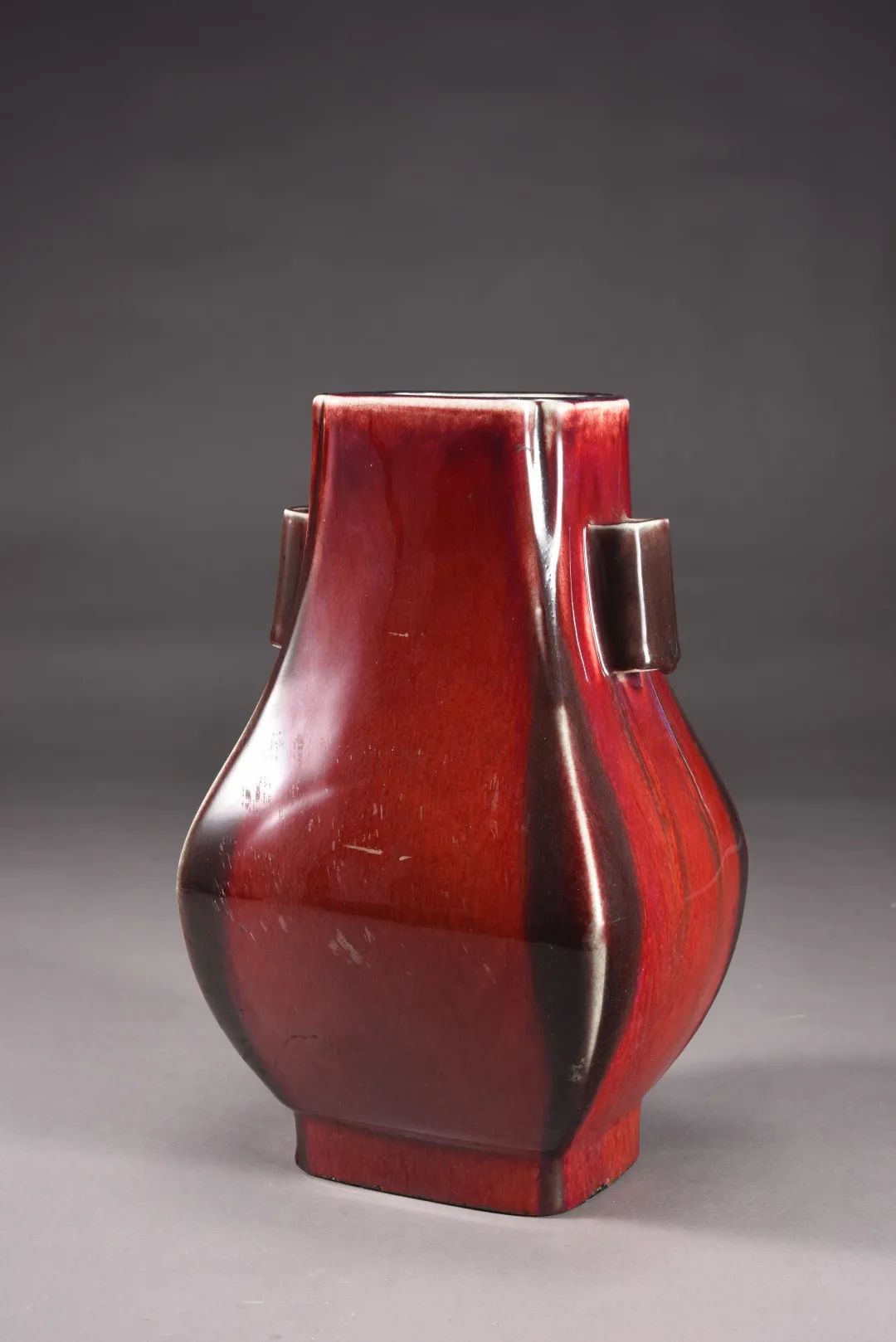 Red-glazed vase with tubular handles, Qing Dynasty, from the collection of the Wuhan Museum [Photo/Official WeChat account of the Wuhan Museum]