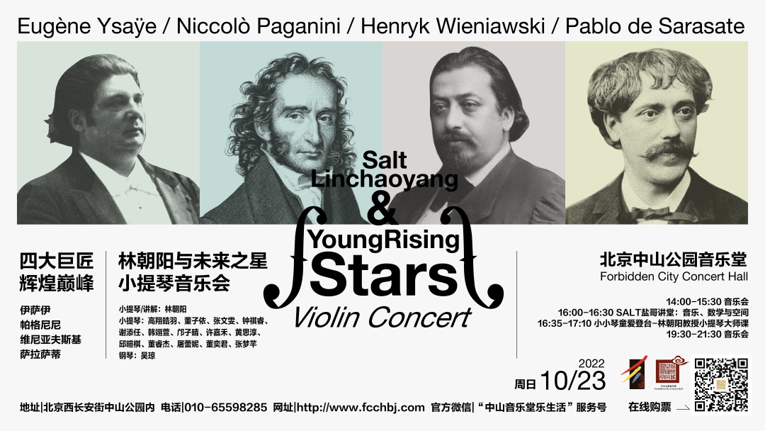 Calling all violin music lovers! Famed violinist Lin Chaoyang will give two concerts with his students at the Forbidden City Concert Hall in Beijing on Oct 23. They will perform melodies by Eugène Ysaÿe, Niccolò Paganini, Henryk Wieniawski and Pablo de Sarasate. Lin will also give lectures on playing the violin.