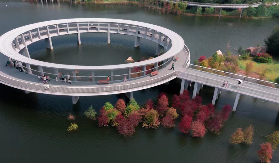 Autumn arrives in Xiamen, Fujian province, with bald cypresses turning red and yellow near Dongshan mountain. [Photo by Lin Minghong/Provided to chinadaily.com.cn]
